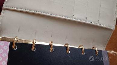 Difetti: evidenziati in foto. Qualche segno dato dagli anelli interni e lievi segni di trasferimento di colore esterni. Nel complesso buone condizioni, considerando che l'agenda ha diversi anni e il Monogram Vernis è delicato.