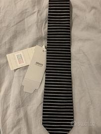 Vendo cravatta Armani Collezioni colore nero a righe argento. Nuova, mai usata con cartellino originale come da foto.