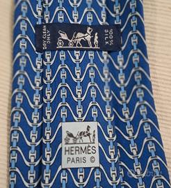 cravattaHermèsinsetacon un motivo a catena, spesso identificato con nomi come "Chaine d'Ancre" o simili variazioni della fantasia iconica del brand.