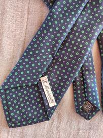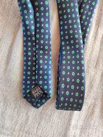 Elegante cravatta su fondo blu scuro, 100% seta, made in Italy, mai utilizzata, firmata dalla nota boutique Marinella di Napoli, che dal 1914 domina la scena italiana ed estera degli accessori da uomo.