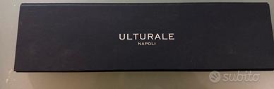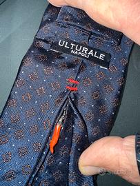 Cravatta blu con paisley marroni. Marca ULTIRALE la piu famosa di Napoli. Cravatta con cornetto portafortuna.