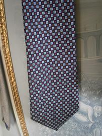 Cravatta di pura seta Van Linnen;fantasia a quadretti :blu -bianco e rosso .Degli anni '90.