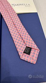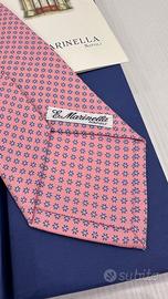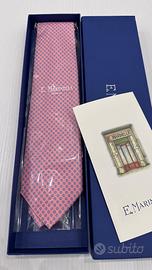Vendo cravatta E. Marinella NUOVA, mai usata e sempre tenuta in armadio, nella sua confezione originale. Colore di fondo rosa con fantasie di piccoli fiori blu. Lunghezza 148 cm larghezza 8 cm. La scatola, il certificato e la bustina trasparente SONO INCLUSE NEL PREZZO.