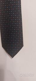 Cravatta Marinella blu scura con cerchietti fantasia bianchi e bordeaux. Nuova mai indossata