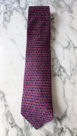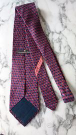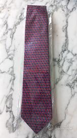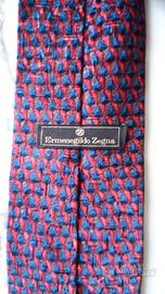 Cravatta Ermenegildo Zegna vintage nei toni del rosso e blu. Larghezza massima 10 cm. 100% seta. Con custodia trasparente originale con logo.