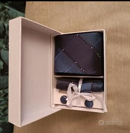 Parure composta da cravatta, fazzoletto da taschino, gemelli da polso e fermacravatta completamente nuovi prezzo trattabile