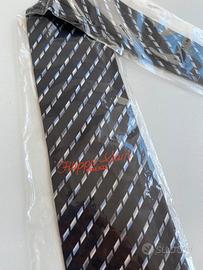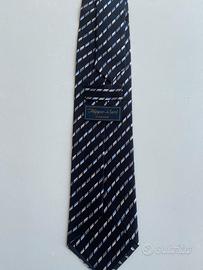 Design raffinato con motivo geometrico a righe diagonali nei toni del blu, argento e nero, perfetta per look formali e da ufficio.
