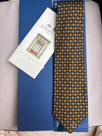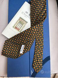 Cravatta firmata E.Marinella in pura seta colore di fondo blu con fantasia in marrone come da foto condizioni eccellenti misura della pala 10 il prezzo si riferisce alla SOLA CRAVATTA