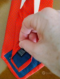 Vendo bellissima cravatta "Giampiero Creazioni" 100% seta, made in Como col. rosso con puntini blu. Larghezza massima cm. 9,5. Prezzo leggermente trattabile.