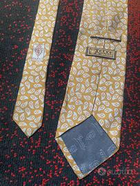 Cravatta Gucci Vintage ‘70/‘80 Made in Italy, 100% seta Verde oliva con fantasia