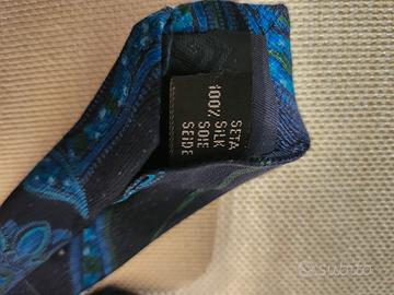 Presenta un classico motivo paisley con colori blu scuro, blu,100% seta.