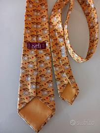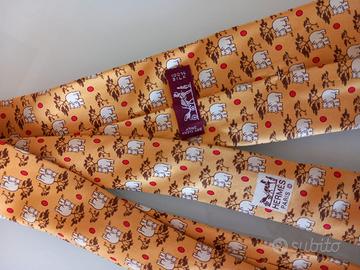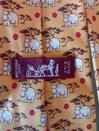 Vendo stilosa cravatta originale di disegno ambientazione Africana con Ippopotamo su sfondo solare giallo