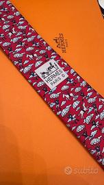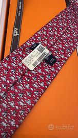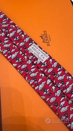 Vendo da collezione privata cravatta Hermès NUOVA con cartellino. Mai usata una sola volta e sempre tenuta in armadio, nella sua confezione originale. Colore di fondo rosso con fantasie di piccoli uccellini. Lunghezza 148 cm larghezza 7,8 cm. La scatola, la shopper e il nastrino non sono inclusi nel prezzo ma possono essere acquistati, richiedendoli in chat al momento dell'acquisto, aggiungendo 10 €.