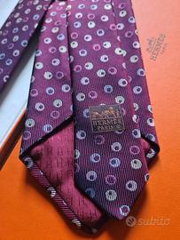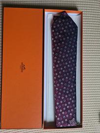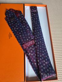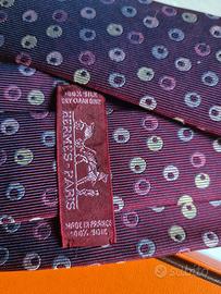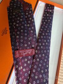 Bellissima Cravatta Hermes colore viola oscuro ,con palline , in pura seta , made in France