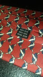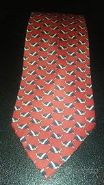 Elegante cravatta Ibbas in pura seta, con una vivace fantasia di tartarughe. - Materiale: 100% Seta - Fantasia: Tartarughe - Colore base: Rosso - Dettagli: Blu e bianco