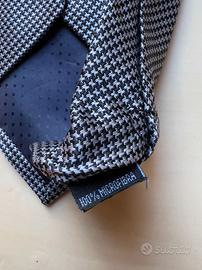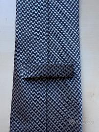 Cravatta in 100% microfibra. Colore argento e blu e fodera interna blu.
