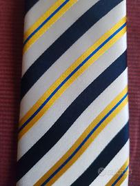 Cravatta a righe bianche, neRe e oro con righine blu, originale 7 Camicie, in seta, mai indossata.