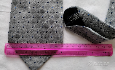 Bella cravatta color cenere, fantasia ton sur ton con piccolissimi rombi blu lucidi, 50% seta 50% lana. Jacobs Ties London.