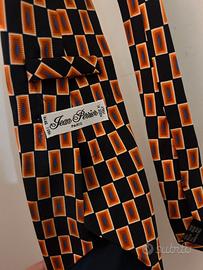 Cravatta Jean Perrier Paris, 100% seta, made in Italy. Motivo geometrico nei toni nero, arancione e blu, con uno stile leggermente vintage. Elegante, adatta sia per occasioni formali che outfit più casual. Condizioni: molto buone, nessun difetto visibile. Ritiro zona Metro Spezia, possibile spedizione.