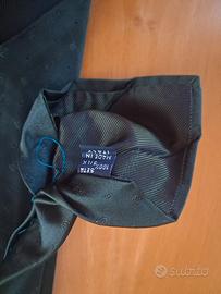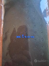 Cravatta Kiton pura seta, fatta a mano, nuova in confezione originale. Verde scuro con disegni tono su tono. Larghezza punta 9,5 cm, lunghezza totale 147,5 cm
