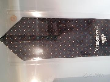 Vendo cravatta Marinella mai indossata, ancora contenuta nel confezionamento originale. Cravatta classica in seta blu scuro con fantasie fiori. Compresa di scatola, busta e imballaggi.