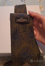 Vendo cravatta marrone Valentino con fantasia pasley, con dettagli viola e blu. 100% seta Misura di lunghezza cm 143