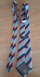 Due cravatte "Associazione Nazionale Carabinieri ": colore grigio con righe oblique rosse e blu, 100% poliestere made in Italy. Nera con righe oblique blu e rosse, logo ricamato a mano, fatta a mano in Italia 100% pura seta. Ottime per collezionisti di articoli militari. Come nuove non hanno difetti.