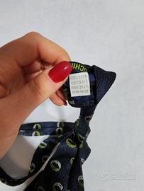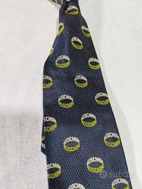 Cravatta Moschino dal design elegante e ricercato, perfetta per dare un tocco distintivo a qualsiasi outfit formale o smart casual. Realizzata in 100% seta, presenta una raffinata fantasia all over con logo Moschino che la rende originale ma allo stesso tempo versatile. Il colore blu scuro la rende facilmente abbinabile e adatta a diverse occasioni. Qualità premium e tessuto morbido e lucente, tipico del brand. Condizioni perfette, come appena uscita dal negozio. Marca: Moschino Materiale: 100% seta Colore: Blu con fantasia logo Condizioni: Perfette Spedizione veloce 24/48h. Per qualsiasi informazione o foto aggiuntive non esitare a contattarmi.