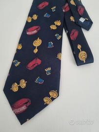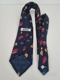 Cravatta Moschino in seta Made in Italy vintage originale 100% silk blu palestra
