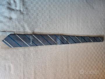 Cravatta Brioni originale con fondo grigio e rghe blu e beige. composizione 63%seta 37 % lino. Misure 8x150 Nuova mai indossata