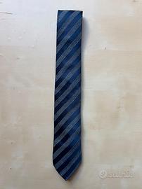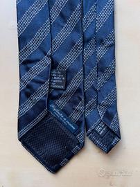 Cravatta regimental Bucalo, 100% in pura seta di alta qualità. Colore blu e argento, fodera blu.