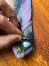 Meravigliosa cravatta di Roberto Cavalli. Originale con ologramma cavalli. Colore grigio e viola. 100% seta.