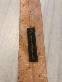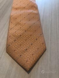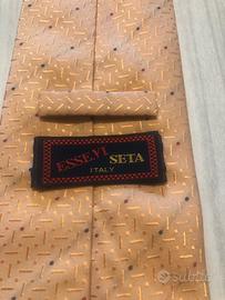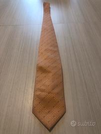 Vendo cravatta di color rosa carne con all'interno delle righe rosse e nere visibili all'occhio grazie a dei buchetti riportati sulla cravatta, molto bella e particolare!