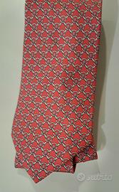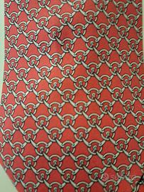 La cravatta rossa è un nodello in seta di Hermès. Presenta un motivo a catene intrecciate ed è realizzata in 100% seta.