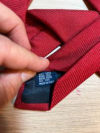 Cravatta di colore rosso, 100% seta, made in Italy, lunghezza e dimensioni standard.