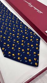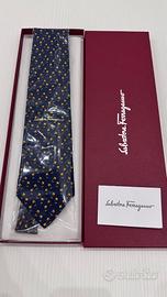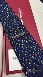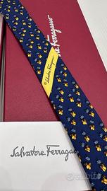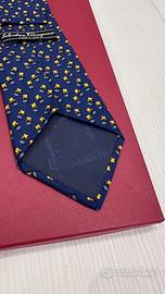 Vendo cravatta Salvatore Ferragamo usata 2 volte e sempre tenuta in armadio, nella sua confezione originale. Colore di fondo blu con fantasie di piccole api su fiori. Lunghezza 148 cm larghezza 9 cm. La scatola e la bustina trasparente non sono incluse nel prezzo ma possono essere acquistate, richiedendole in chat al momento dell'acquisto, aggiungendo 10 €.