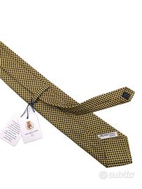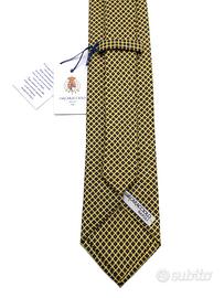 Cravatta sartoria napoletana A.Caracciolo. 100% seta. Fantasia raffinata. Colore giallo. Lunghezza 150 cm. Largezza pala 8 cm.