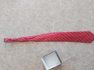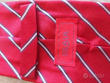 autentica cravatta Isaia Napoli in seta a righe rosse 7 pieghe - Larghezza: 9 cm = 3,5 pollici 100% seta Made in Italy . Con cofanetto. Indossata 3 volte