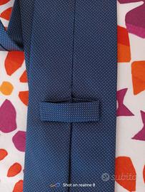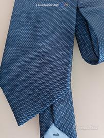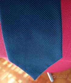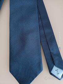 Cravatta 100% in seta ."made in Italy" ,blu con un sottile filo azzurro intrecciato. Elegante e discreta , si può abbinare a camicie e giacche di diversi colori.