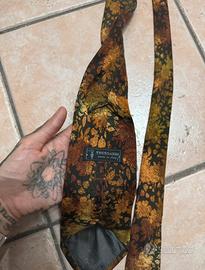 Cravatta elegante firmata Trussardi con raffinato motivo floreale nei toni del bronzo, oro e nero. Design sofisticato e ricco di dettagli, ideale per cerimonie, eventi o look formali!