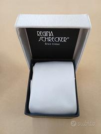 Cravatta da uomo di colore bianco, perfetta per completare un outfit elegante. - Tessuto con trama a coste diagonali.