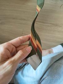 Cravatta inacetato verde rossa e arancione con dettagli ocra/giallo