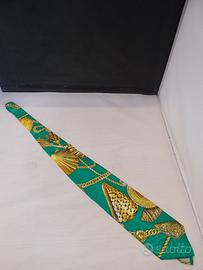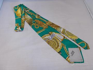 Cravatta "Vintage" Gianni Versace anni "90 in seta verde con stampa barocca gialla e nera Modello con design a punta Composizione 100% SETA Made in Italy Larghezza 10 cm circa Lunghezza 145 cm circa "VINTAGE" in ottime condizioni - Come nuova Prodotto SENZA CONFEZIONE ORIGINALE Prodotto SFUSO - MAI USATO - VINTAGE