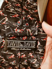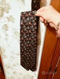Cravatta vintage per amanti dello sci 🎿 con decoro di sciatori. Colore blu notte quasi nero, pura seta con fondo marezzato. Laccetto per inserimento lato stretto.