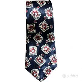 Questa cravatta vintage rappresenta l’eleganza eclettica degli anni '90, unendo una palette cromatica classica a un design grafico audace e distintivo. Realizzata in seta di alta qualità, si distingue per la sua lucentezza naturale e la mano sostenuta, caratteristiche tipiche della manifattura d'epoca dedicata all'accessorio maschile.