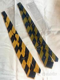 - cravatta gialla e blu, con logo rosso