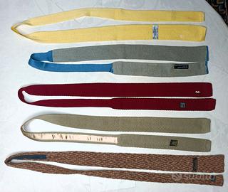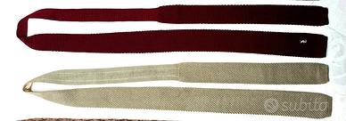 5 Cravatte vintage in tessuto a maglia: puro cotone Louis Feraud; alpaca 100% Metelli; 100% lana, 100% cotone, tutte made in Italy. Pulite e perfette. Leggerissima ombra su cravatta gialla, quasi impercettibile. Euro 12 l'una, in blocco 50 euro + spedizione.