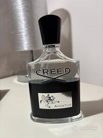 Profumo originale Creed Aventus, formato da 100 ml, con confezione completa e flacone elegante in vetro trasparente con fascia nera e dettagli in argento.