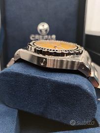 Crepas Aquamatic 1200 mt – Nuovo – Doppio Quadrante OUT of STOCK - NON PIU' DISPONIBILE Cassa in acciaio inossidabile 316L con finitura spazzolata e lucida 43,60 mm - Spessore 12,50 mm - Lunghezza 49,00mm – lunetta e corona in acciaio con inserto conico in ceramica a 120 posizioni - Lancette, quadrante e lunetta con Superluminova BGW9 e Old Radium - Zaffiro piatto con trattamento antiriflesso sulla faccia interna da 3mm - Calibro automatico Sellita SW200-1 Impermeabilità a tenuta stagna 120 atmos. / 1200 metri - Corona e cappuccio avvitati - Solido bracciale integrato in acciaio inossidabile 316L – SECONDO QUADRANTE PER CAMBIARE LOOK AL VS. AQUAMATIC Scatola originale – panno per pulizia – certificato di garanzia card all’origine – cacciavite per regolazione cinturino – maglie di allungamento – OROLOGIO PRATICAMENTE NUOVO – INUSATO- GARANZIA UFFICIALE VALIDA FINO AL 2027 PREGASI ASTENERSI DA PROPOSTE ASSURDE