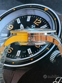 Set completissimo Ottime condizioni Limited edition n.93 di 500 Diametro 42,5 escluso corona Movimento automatico Eta 2824-2 Vetro zaffiro antiriflesso bombato Bracciale in acciaio originale con estensione sub, presente maglia aggiuntiva che lo porta ad adattarsi a polsi oltre 22. Cinturino Tropic nero originale Solo vendita, no scambi, no offerte assurde